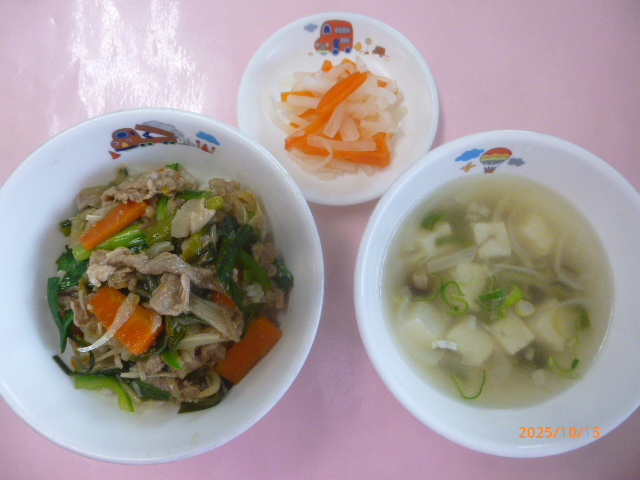 | 15(水) |  | 豚肉のプルコギ風丼・大根の甘酢和え・中華スープ |