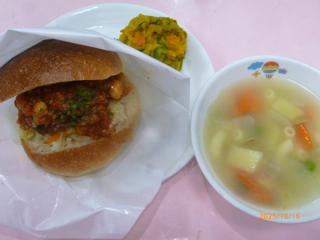 | 16(木) |  | 手作りソーセージとチリコンカンのドック・南瓜サラダ・お野菜ポトフ |
