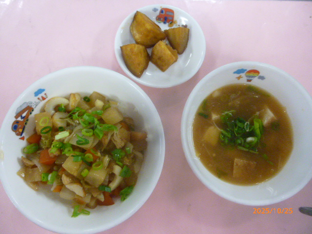 | 25(土) |  | お野菜のあんかけ丼・さつま芋の甘煮・お味噌汁 |