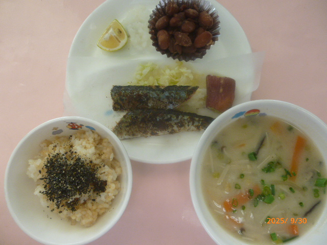 30(火) |  | アマランサス入り合わせご飯・さんまの塩焼き・煮豆・団子汁 |