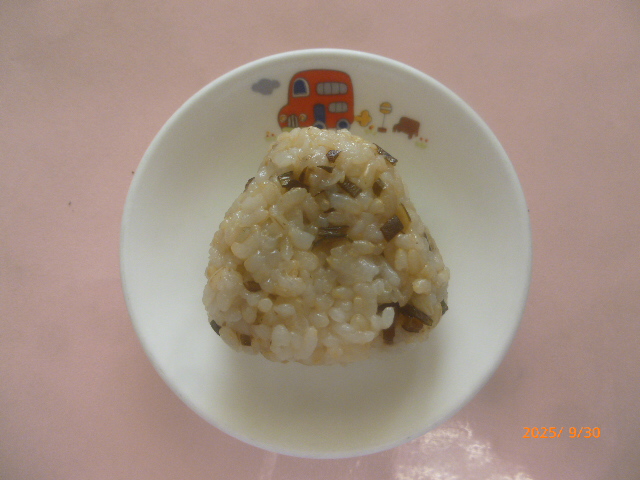 6(土) |  | わかめご飯・焼きビーフン・粉ふき芋・中華スープ |